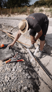 Unser Stromnetz besteht aus einer komplexen Vermaschung von unzähligem aneinander geschalteten Erdkabeln, Freileitungen, sowie Trafostationen. Dieses Netz befindet sich dauerhaft im Wandel, in dem stätige Umbauten und Erweiterungen stattfinden. Die Kabelmontage definiert sich aus Hausanschlüsse von Einfamilienhäuser bis hin zu großen Trafostation. Egal ob kleine Niederspannungs- oder große Mittelspannungskabel. Alles montieren wir aus einer Hand.